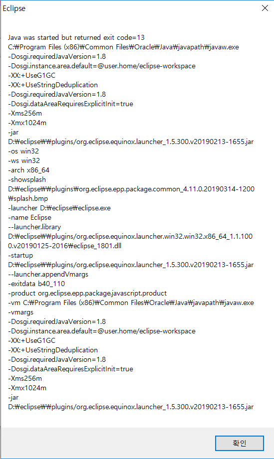 eclipse 를 실행 시키려는데 아래와 같이 팝업이 뜨면서 안되는 경우가 발생 한다.