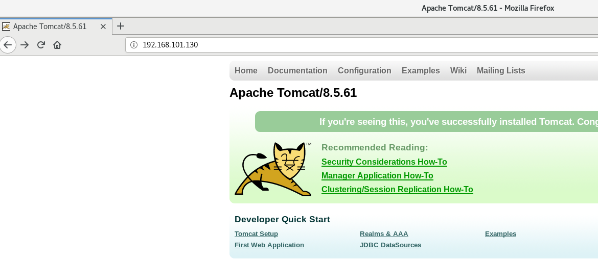 http://192.168.101.130 을 테스트 하면 아래와 같이 tomcat 화면을 볼 수 있습니다.