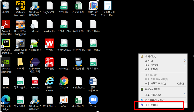 1. 바탕화면에서 마우스 오른쪽 클릭 > 개인 설정