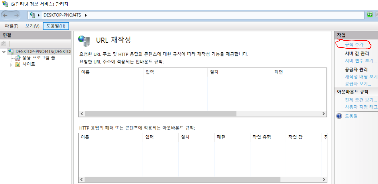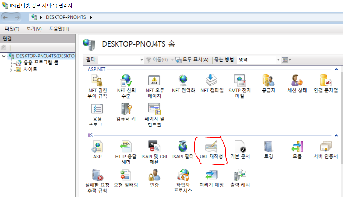 - IIS 관리자 에서 URL 재작성 항목이 있어야 합니다.