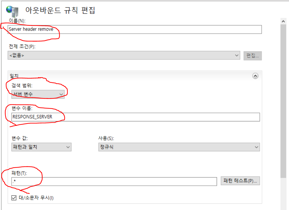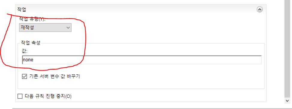 - 작업 > 작업속성 > 값 : IIS 와 버전이 표시 되지 않게끔 적당한 값 설정