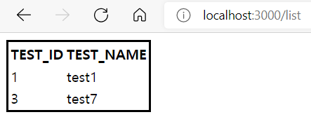 1. Database 에서 테이블에 아래와 같이 test 데이터를 insert 합니다.