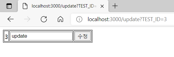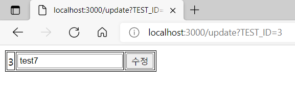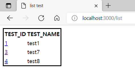 구현 내용: list 출력에 link 로 TEST_ID 를 /update URL에 전달합니다.