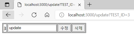 * update view 화면 (삭제 버튼 클릭 시 router 에 삭제 로직 실행 됩니다.)