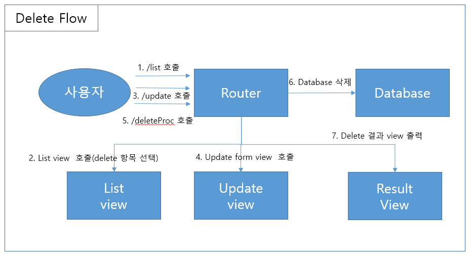 * 게시판의 삭제 업무 flow 는 아래 그림과 같습니다.