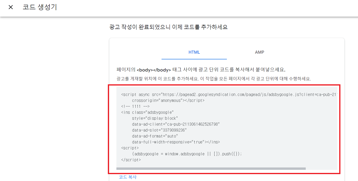 설정하면 html 코드를 알 필요도 없고 상당히 애드센스 광고를