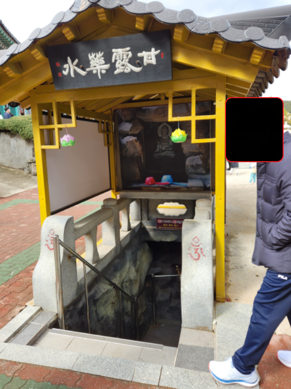 사찰에 들어가서 중간에 보면 지하로 내려가는 문이 있다.