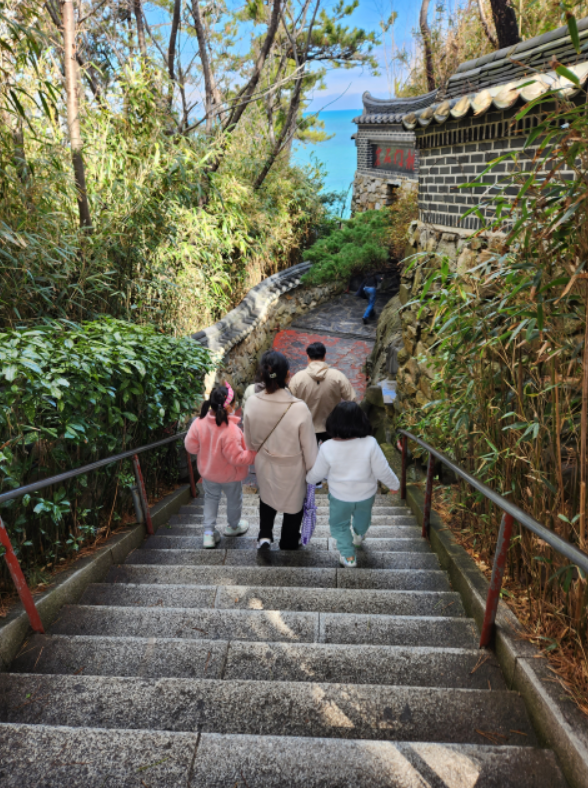 교통안전탑쪽에서 돌계단 내리막길로 내려가면서 부터가 진짜 용궁사의 시작이다.