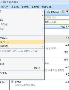 Outlook1 [outlook]메일 백업 outlook에서 메일 백업 하는 법 1. 상단 file 메뉴의 가져오기 / 내보내기 메뉴 선택 2. 다음 화면 에서 내보내기 - 파일 을 선택 3. 다음 화면에서 백업 받을 형태 선택 4. outlook메일함 중 백업 받고 싶은 항목을 선택 5. 백업 받을 경로 선택 위와 같이 하면 백업이 완료 되고 백업 받은 파일을 불러오는 법은 1,2번을 다시 실행하되 2번에서 가져오기 - 다른 프로그램이나 파일을 선택하고 3번에서 선택했던 파일 형식을 선택하고 백업 받은 파일을 선택해 주면 된다. 2011. 9. 6. 이전 1 다음