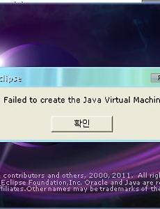 eclipse/Failed to create the Java Virtual Machine 1 [eclipse]Failed to create the Java Virtual Machine 오류 이클립스 시작시 와 같은 화면이 나오면서 실행이 안될 때가 있다. 자바를 못찾아서 나오는 오류 이므로 아래와 같이 eclipse.ini 파일을 수정하면 된다. openFile 밑에 -vm C:/Program Files/Java/jdk1.6.0_07/bin/javaw.exe 이런 방식으로 자바의 javaw.exe 파일을 추가 시켜주면된다.(경로는 다를 수 있으니 확인 해야 한다.) 위와 같이 설정하면 잘 구동이 된다. 2011. 7. 1. 이전 1 다음